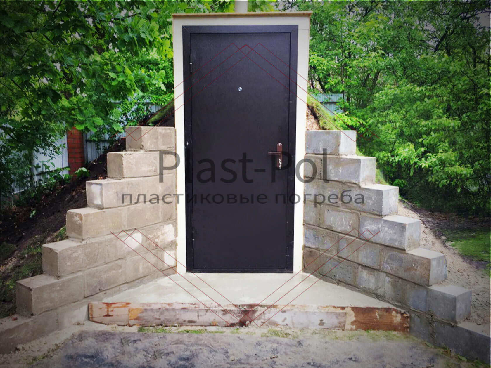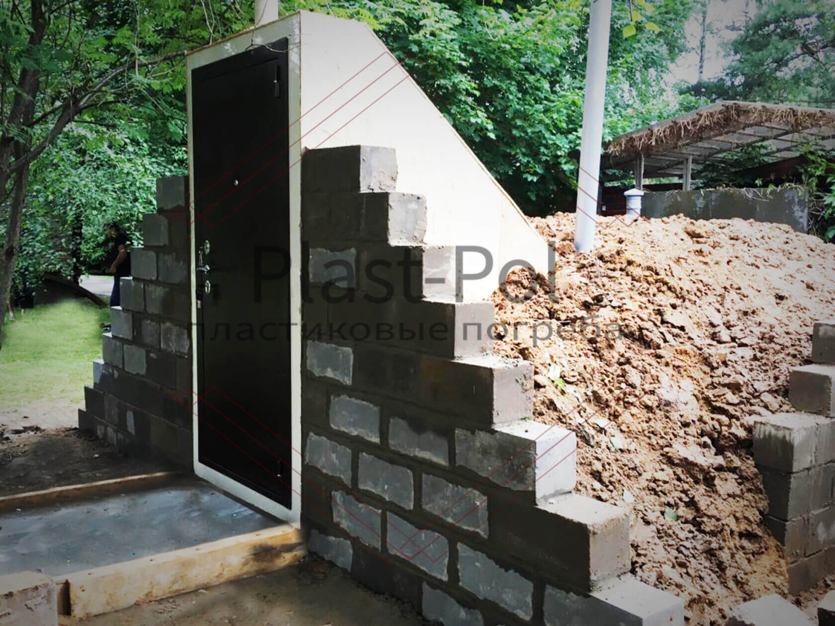 заглублена на ¾ . Выступающая часть погреба поднята над уровнем горизонта 500-1000 мм. В дальнейшем нужна доработка: жесткая обвязка с засыпкой земли в виде клумбы (в стоимость не входит).