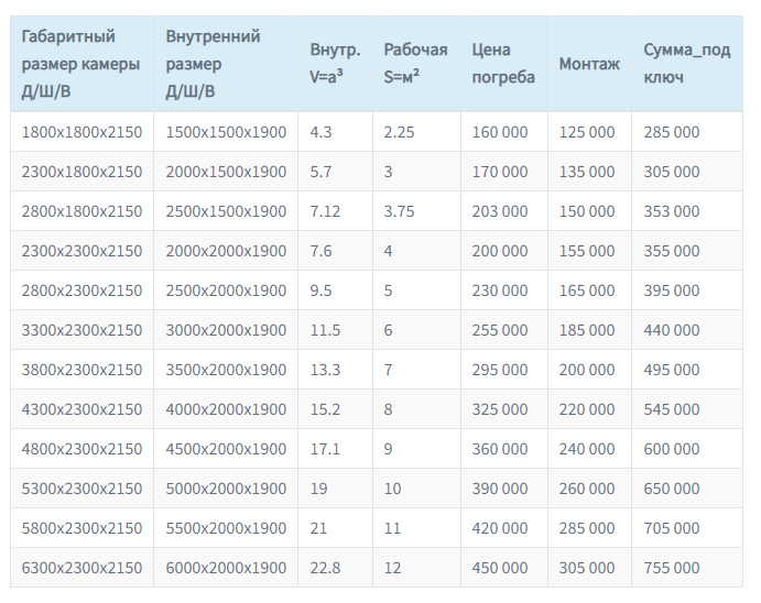 В базовую комплектацию включены электроразводка для освещения, вентиляция, прибор учета влажности. Рекомендуется установка на глинистых, пучинистых, торфяных участках с уровнем грунтовых вод выше 3 метров.